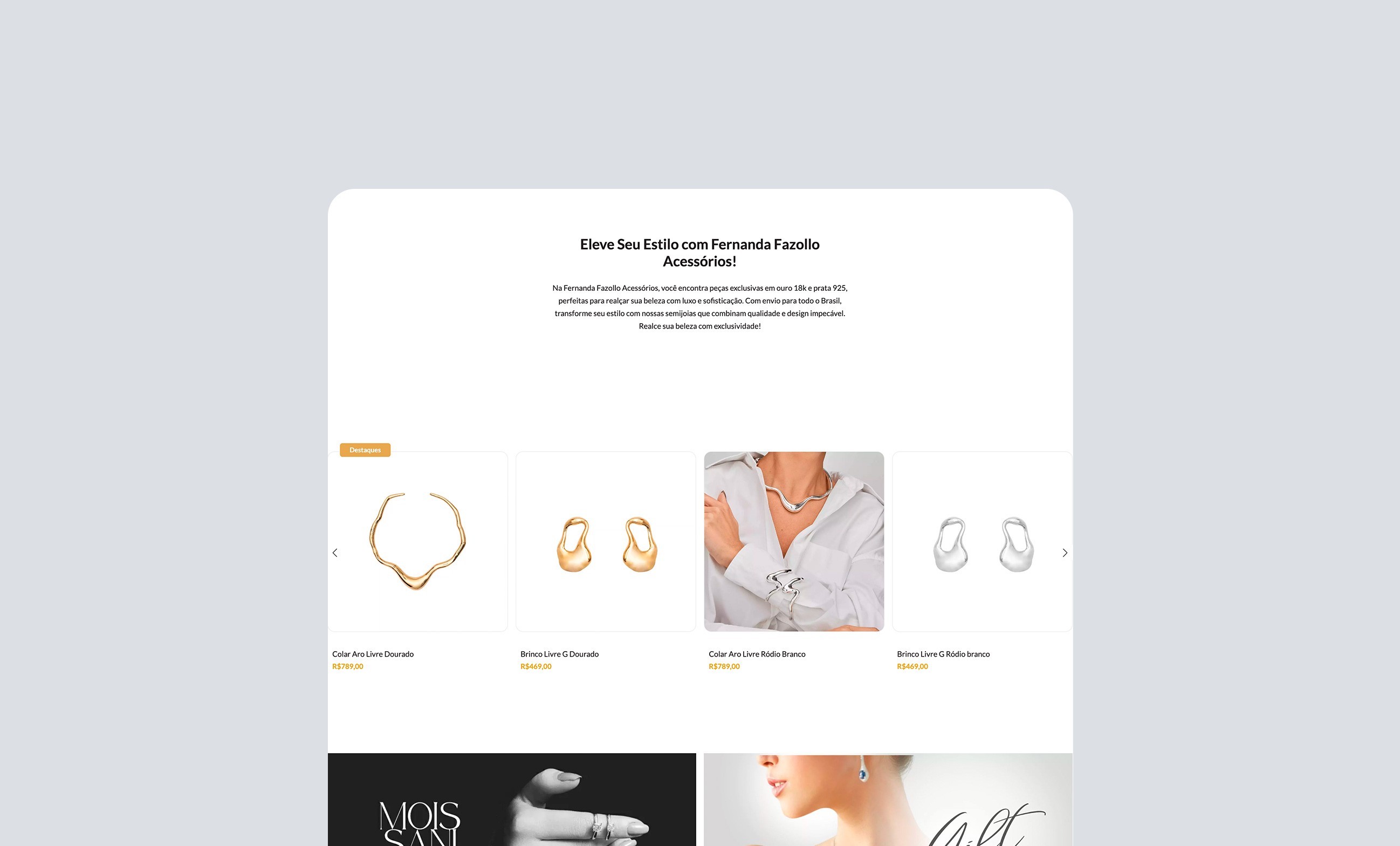 Por indicação de nossa cliente Herreira Semijoias, fomos contratados para implantar a loja virtual da FF Acessórios. O projeto abrange o desenvolvimento do layout, o setup inicial na plataforma Nuvemshop, as integrações necessárias e o acompanhamento contínuo.